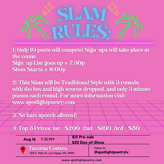 Sign-ups will take place at the venue @ 7:30p This slam will follow traditional style rules: